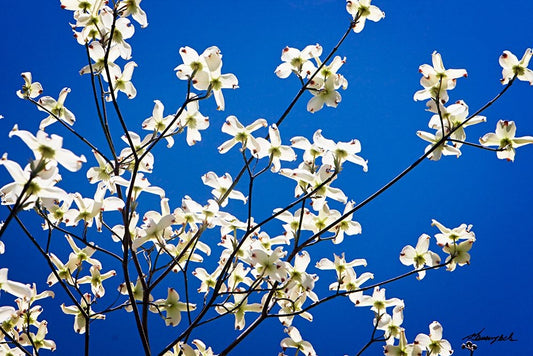 Dogwood on Blue I White Modern Wood Framed Art Print with Double Matting by Hausenflock, Alan