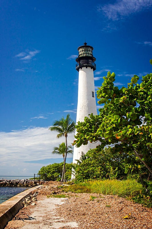 Cape Florida Lighthouse III White Modern Wood Framed Art Print with Double Matting by Hausenflock, Alan