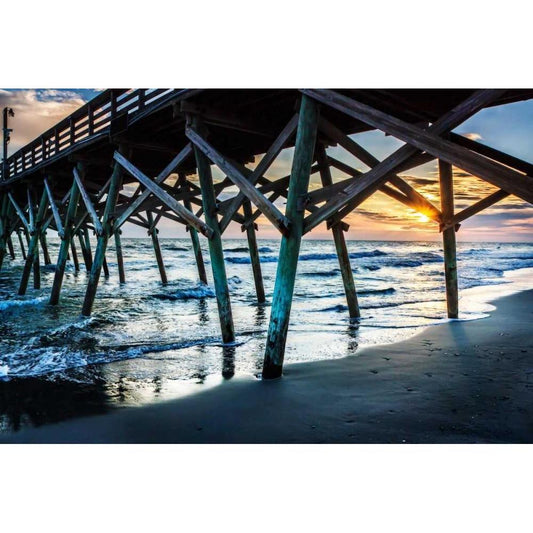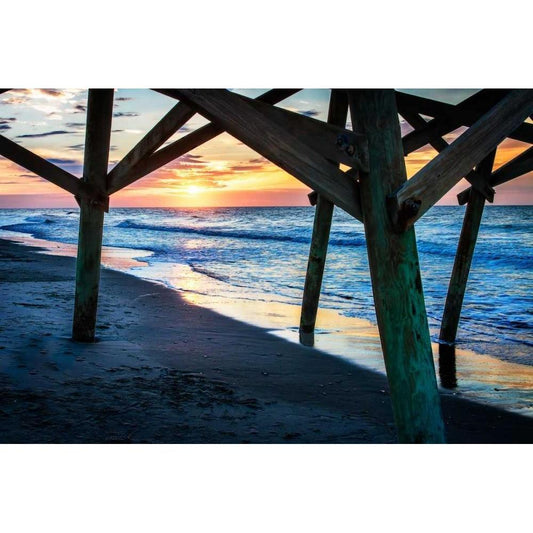 Surfside Pier Sunrise II Black Modern Wood Framed Art Print by Hausenflock, Alan