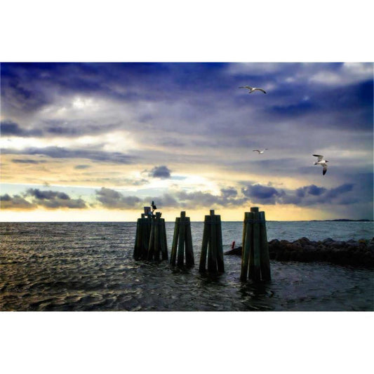 Pamlico Gulls II Black Modern Wood Framed Art Print by Hausenflock, Alan