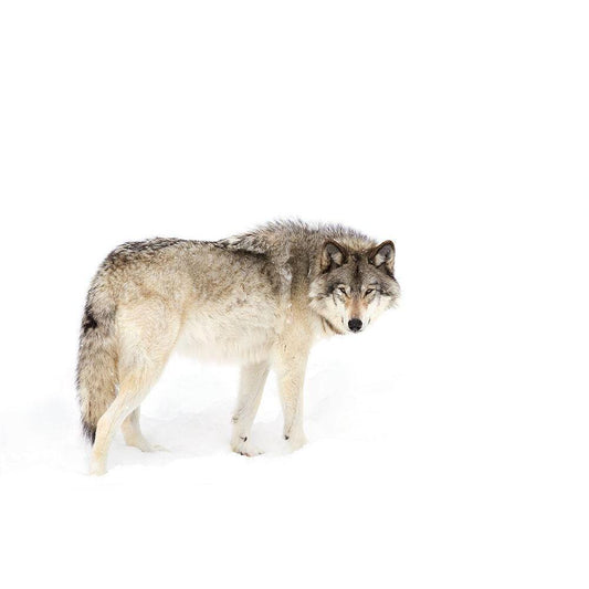 Timber Wolf Walking Through The Snow White Modern Wood Framed Art Print by Cumming, Jim