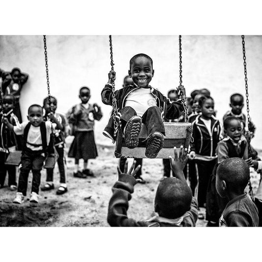 Childrens Playground White Modern Wood Framed Art Print by Vidak, Vedran