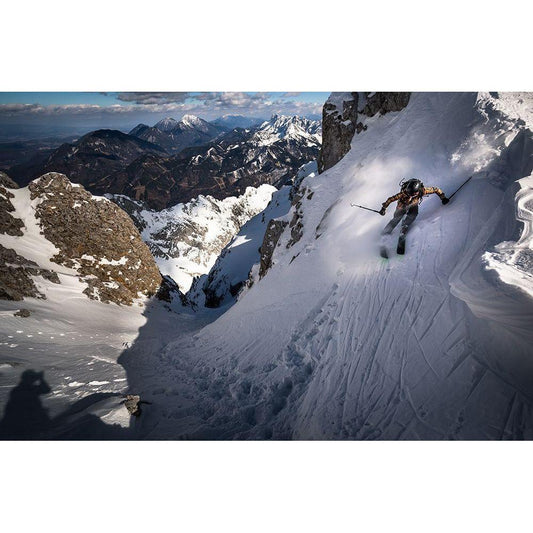 Drop Into Couloir White Modern Wood Framed Art Print by Bertoncelj, Sandi