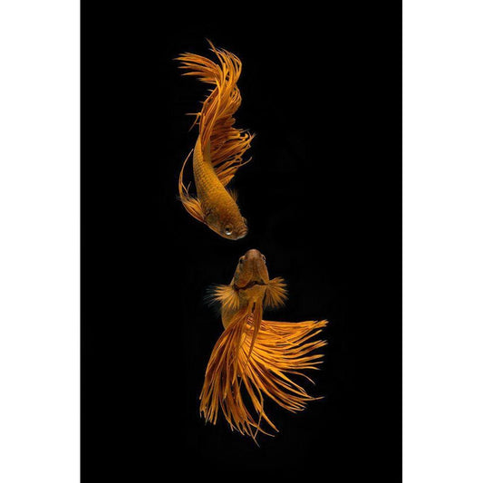Love Story Of The Golden Fish White Modern Wood Framed Art Print by Rahayu, Ganjar