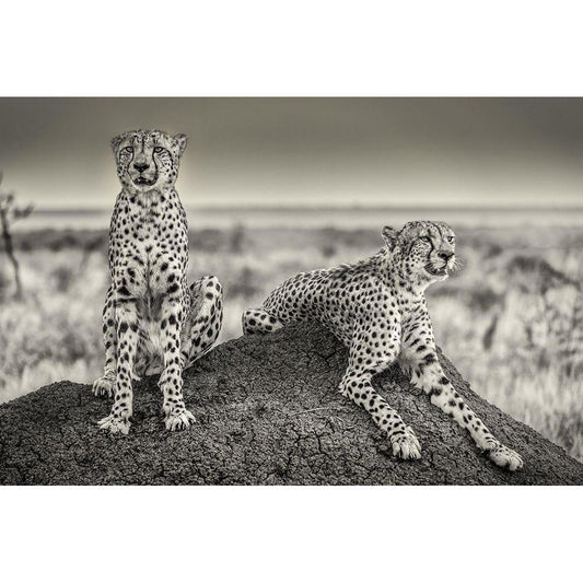 Two Cheetahs Watching Out White Modern Wood Framed Art Print by Scheid, Henrike