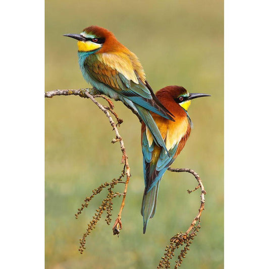 Bee-Eaters In Love White Modern Wood Framed Art Print by Suarez, Mario