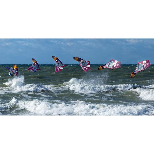 Surfer Jump White Modern Wood Framed Art Print by Londal, Leif