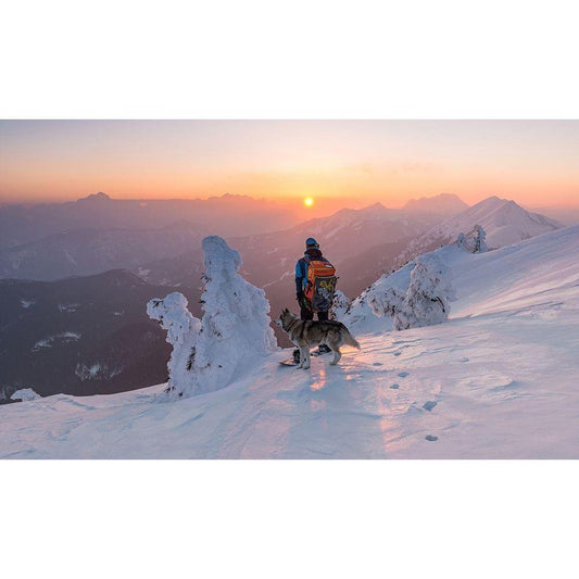 Snowboarder And His Dog White Modern Wood Framed Art Print by Krivec, Ales
