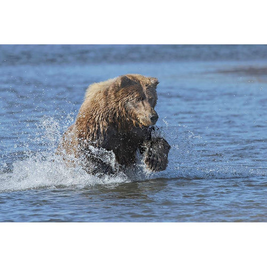 Adult grizzly bear chasing fish-Lake Clark National Park and Preserve-Alaska-Silver Salmon Creek White Modern Wood Framed Art Print by Jones, Adam