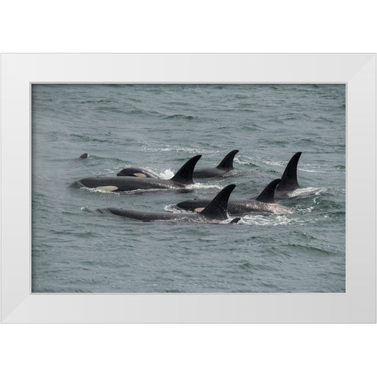 Fast swimming orcas make their way along Icy Strait. White Modern Wood Framed Art Print by Sederquist, Betty
