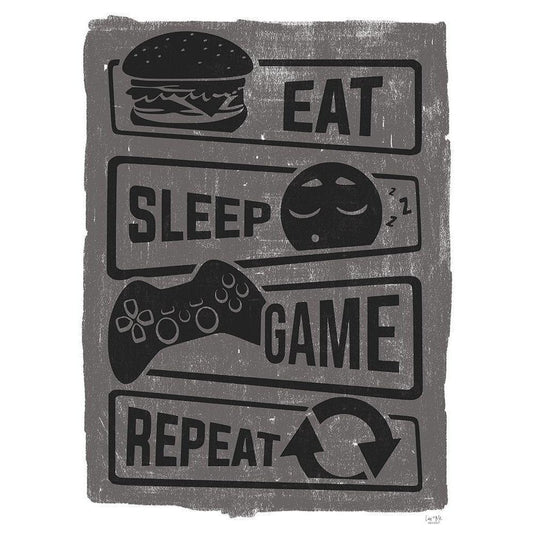 Eat-Sleep-Game-Repeat White Modern Wood Framed Art Print by Lux + Me Designs