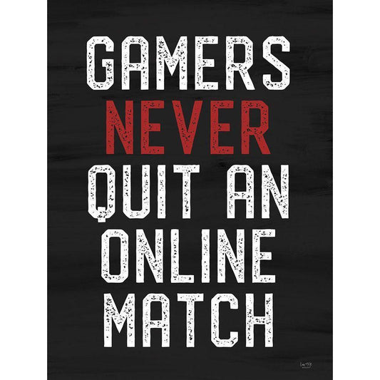 Gamers Never Quit White Modern Wood Framed Art Print by Lux + Me Designs