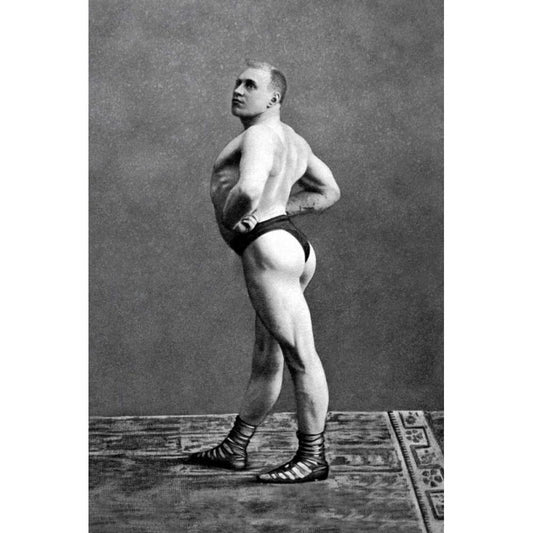 Bodybuilders Back and Left Profile White Modern Wood Framed Art Print by Vintage Muscle Men