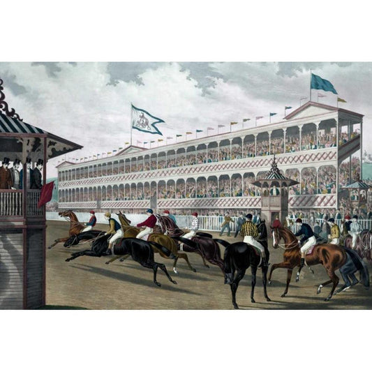 Brighton Beach Race Course White Modern Wood Framed Art Print by NY Litho