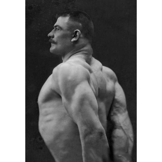 Bodybuilders Back and Partial Left Profile White Modern Wood Framed Art Print by Vintage Muscle Men