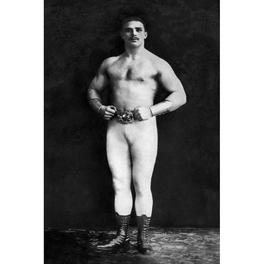 Bodybuilder in Wrestling Outfit and Knee Pads White Modern Wood Framed Art Print by Vintage Muscle Men