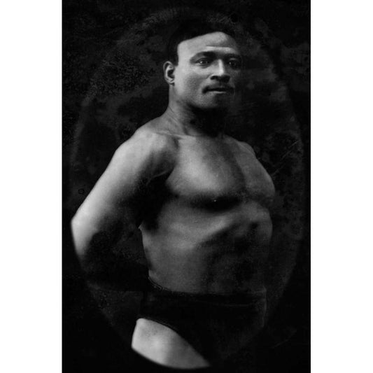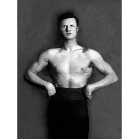 Bodybuilder in Pants with Bared Torso White Modern Wood Framed Art Print by Vintage Muscle Men
