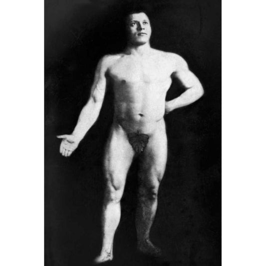 Nude Bodybuilder White Modern Wood Framed Art Print by Vintage Muscle Men