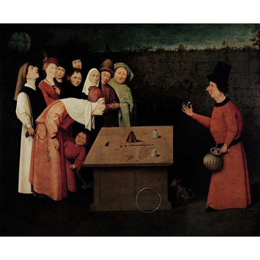 The Conjuror White Modern Wood Framed Art Print by Bosch, Hieronymus