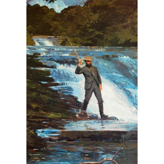 Fishing The Falls White Modern Wood Framed Art Print by Homer, Winslow