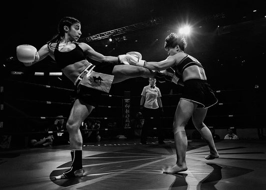 Kickboxing Fighting White Modern Wood Framed Art Print with Double Matting by Zhao, Henry