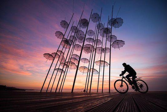 Umbrellas White Modern Wood Framed Art Print with Double Matting by Karakaya, Melih
