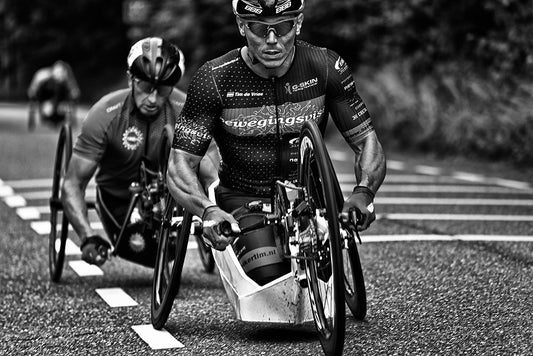 Sunset Cycling White Modern Wood Framed Art Print with Double Matting by Urlings, Lou