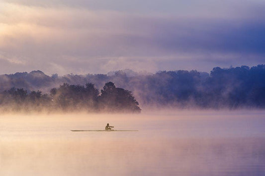 Morning Exercise White Modern Wood Framed Art Print with Double Matting by Li, Austin