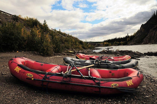 Rafts and the Nenana River, Denali, Alaska, USA White Modern Wood Framed Art Print with Double Matting by Hersen, Michel
