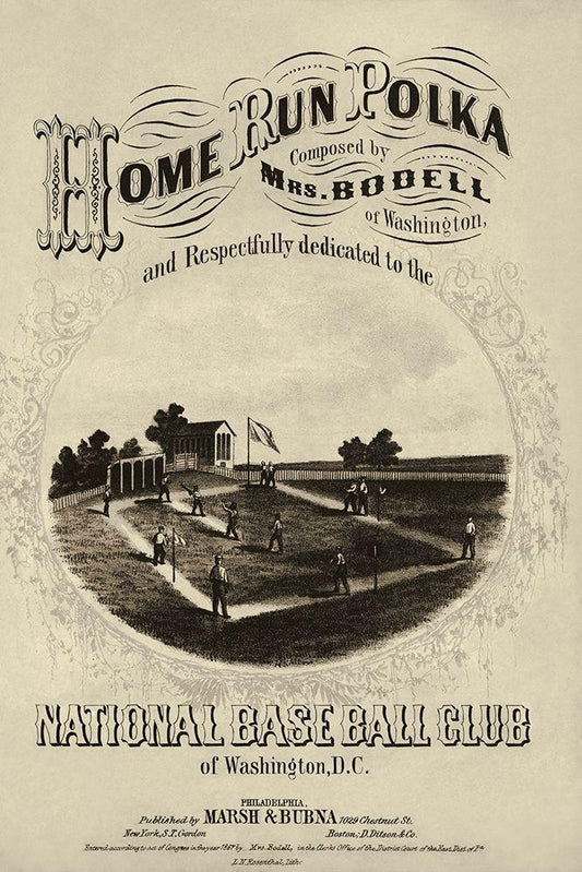 Home run polka White Modern Wood Framed Art Print with Double Matting by Vintage Sports