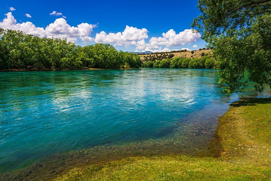 River view from the Upper Clutha River Track-Central Otago-South Island-New Zealand White Modern Wood Framed Art Print with Double Matting by Bishop, Russ