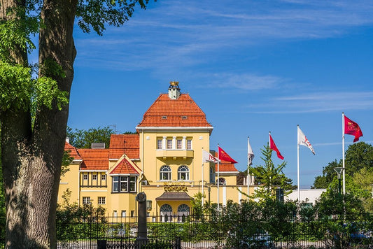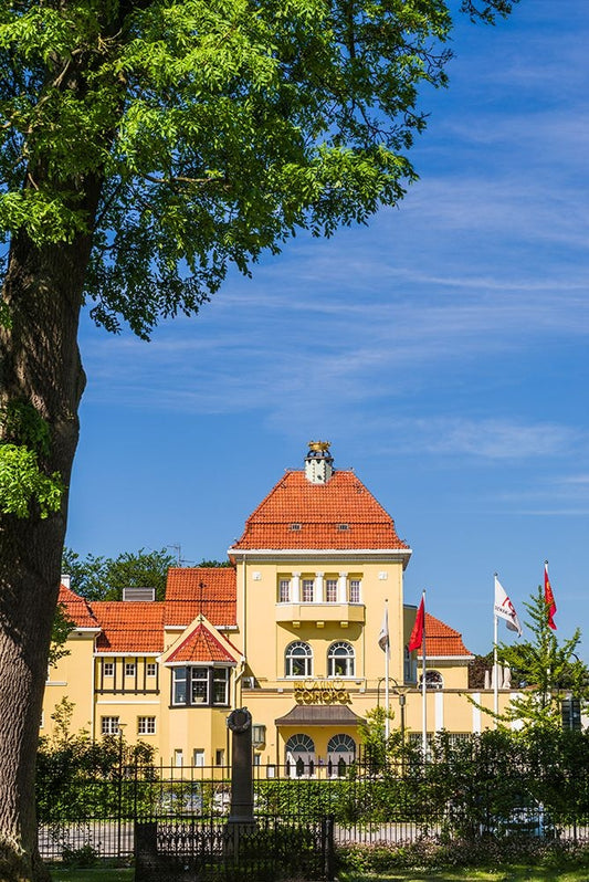 Sweden-Scania-Malmo-Kungsparken park-Casino-exterior White Modern Wood Framed Art Print with Double Matting by Bibikow, Walter