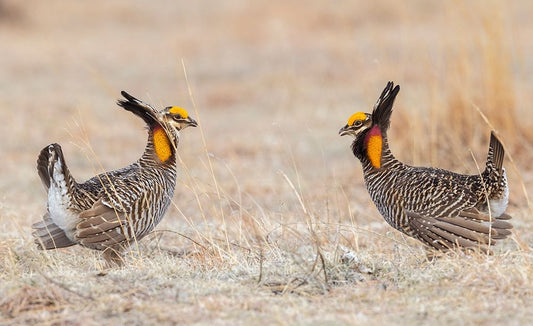 Greater prairie chickens-competing males White Modern Wood Framed Art Print with Double Matting by Archer, Ken