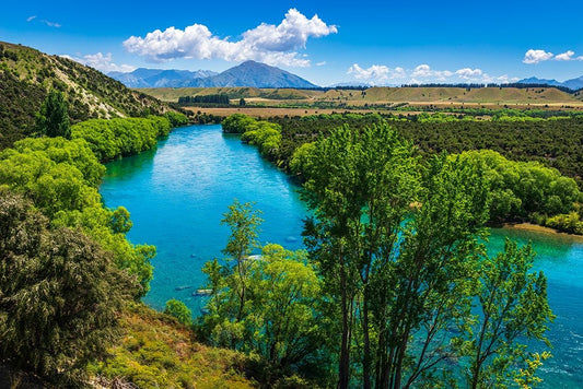 River view from the Upper Clutha River Track-Central Otago-South Island-New Zealand White Modern Wood Framed Art Print with Double Matting by Bishop, Russ