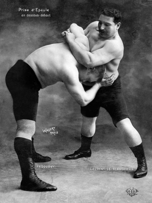 Prise d Epaule en Dessous Debout White Modern Wood Framed Art Print with Double Matting by Vintage Wrestler