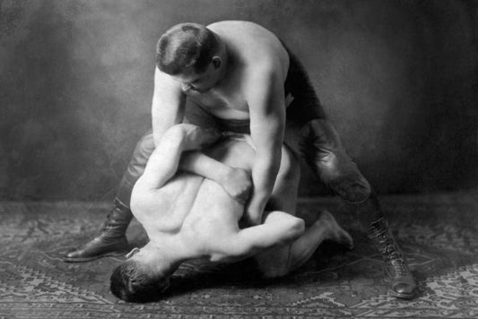 Wrist Roll: Russian Wrestlers White Modern Wood Framed Art Print with Double Matting by Vintage Wrestler