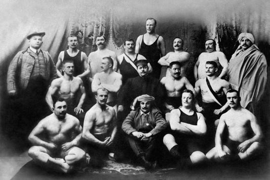 Group of Russian Wrestlers White Modern Wood Framed Art Print with Double Matting by Vintage Wrestler
