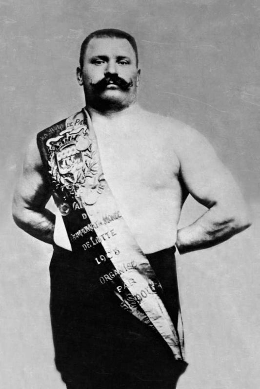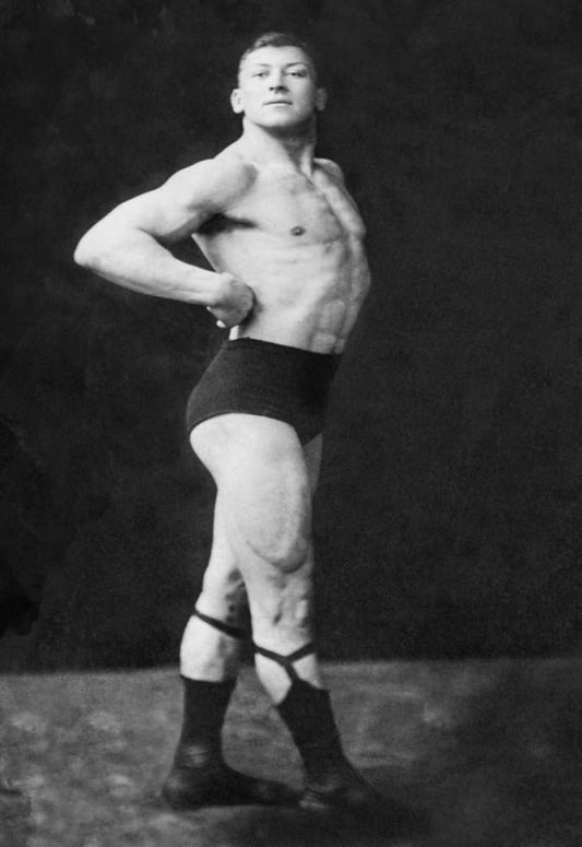 Strongman Pose White Modern Wood Framed Art Print with Double Matting by Vintage Muscle Men