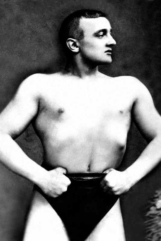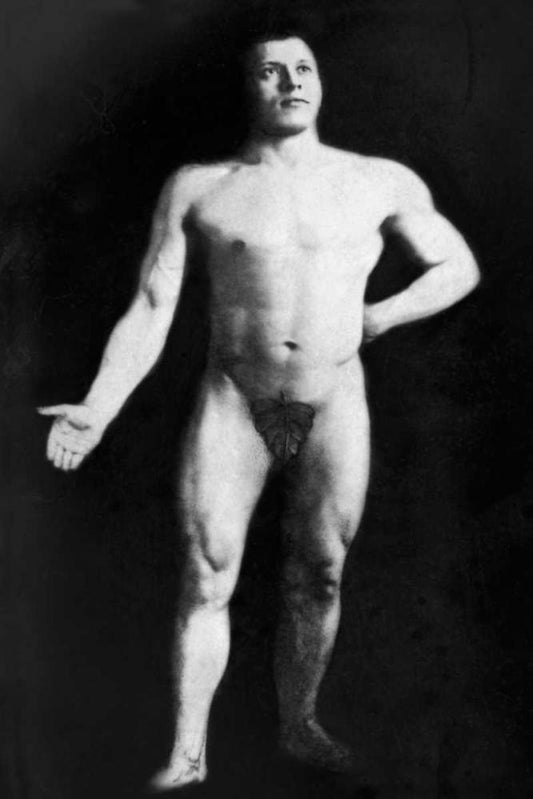 Nude Bodybuilder White Modern Wood Framed Art Print with Double Matting by Vintage Muscle Men