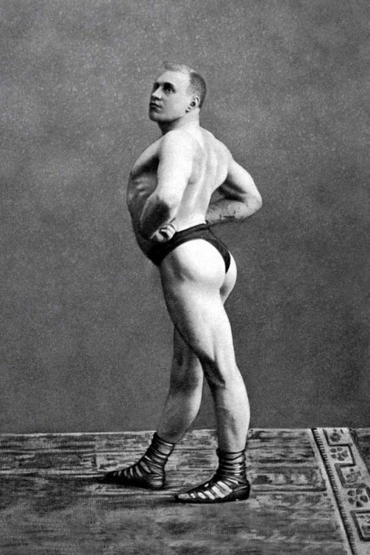 Bodybuilder in Leotard and Boots White Modern Wood Framed Art Print with Double Matting by Vintage Muscle Men