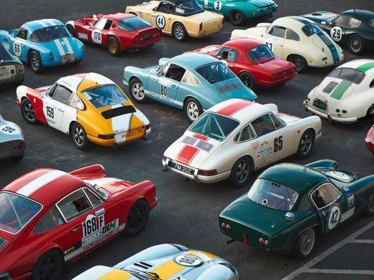 Historical race-cars White Modern Wood Framed Art Print with Double Matting by Gasoline Images