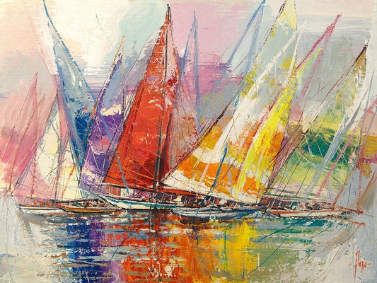 Vele a colori I White Modern Wood Framed Art Print with Double Matting by Florio, Luigi