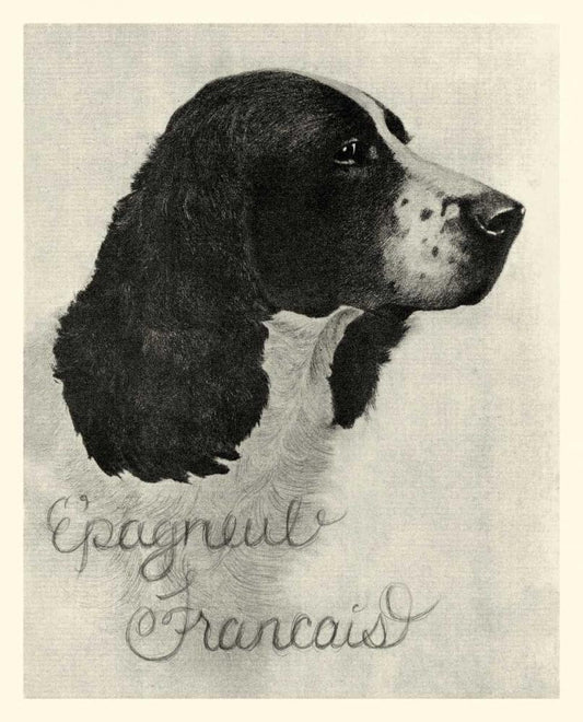 B and W Epagneul Francais White Modern Wood Framed Art Print with Double Matting by Vision Studio