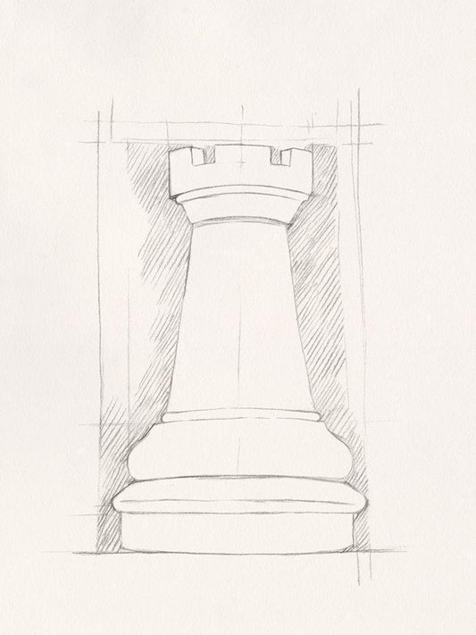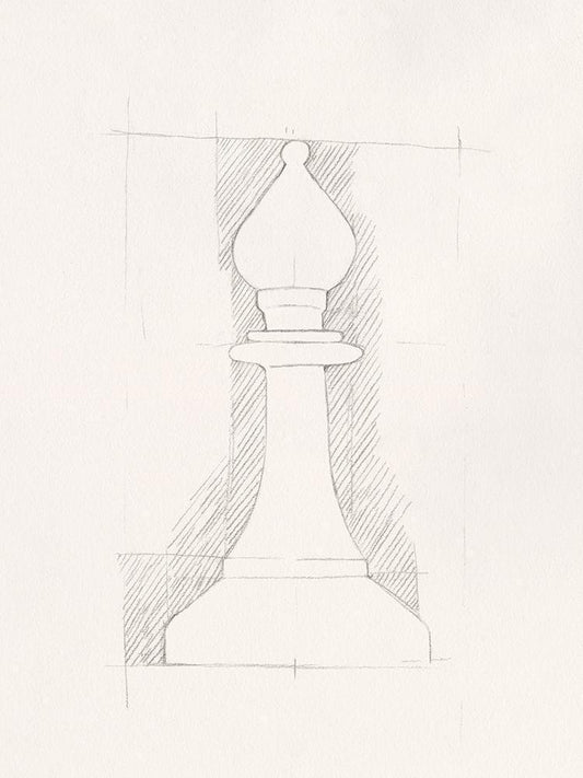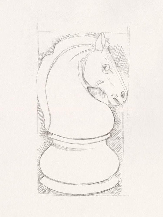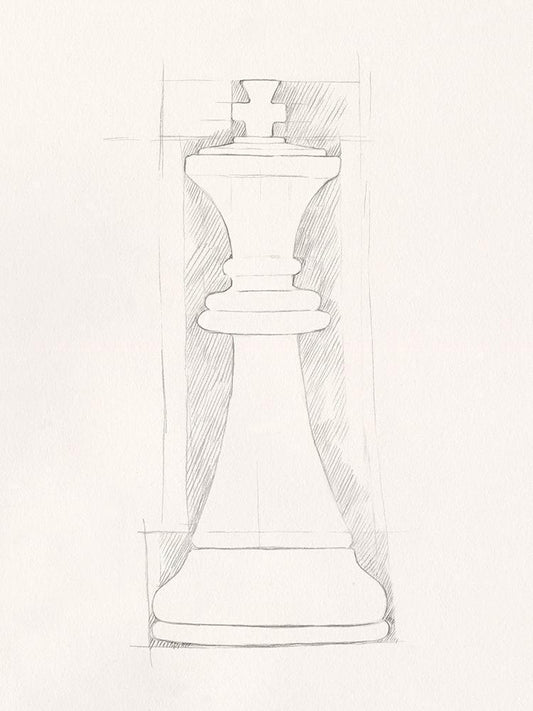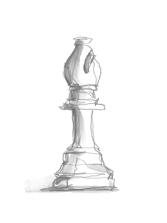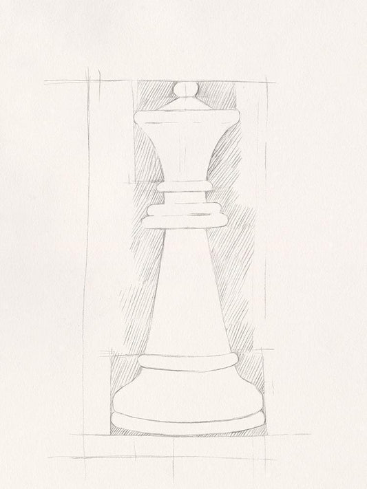 Chess Set Sketch VI White Modern Wood Framed Art Print with Double Matting by Caroline, Emma