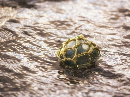 Vintage glass float White Modern Wood Framed Art Print with Double Matting by Plank, Savanah