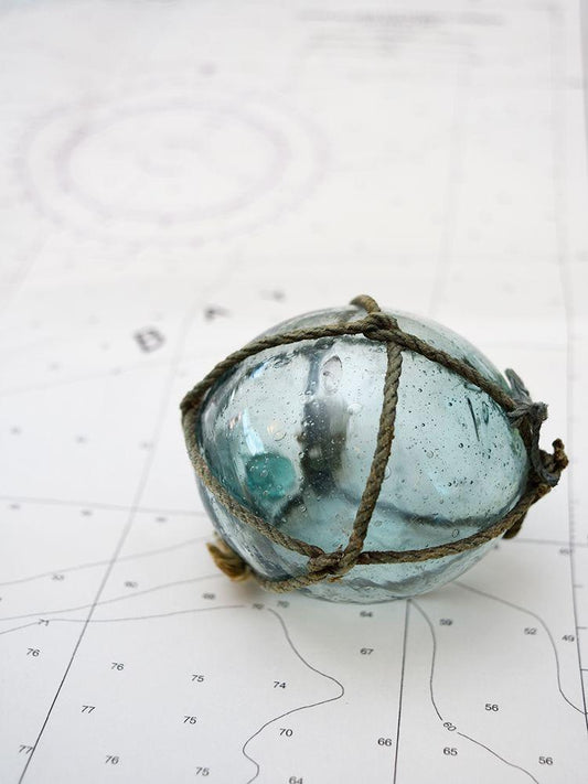 Glass fishing float on chart White Modern Wood Framed Art Print with Double Matting by Plank, Savanah