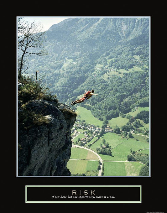 Risk - Parachuter White Modern Wood Framed Art Print with Double Matting by Frontline
