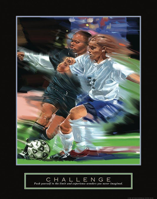 Challenge - Soccer White Modern Wood Framed Art Print with Double Matting by Frontline