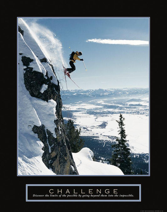 Challenge - Extreme Skier White Modern Wood Framed Art Print with Double Matting by Frontline