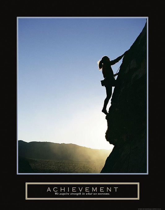 Achievement - Female Climber White Modern Wood Framed Art Print with Double Matting by Frontline